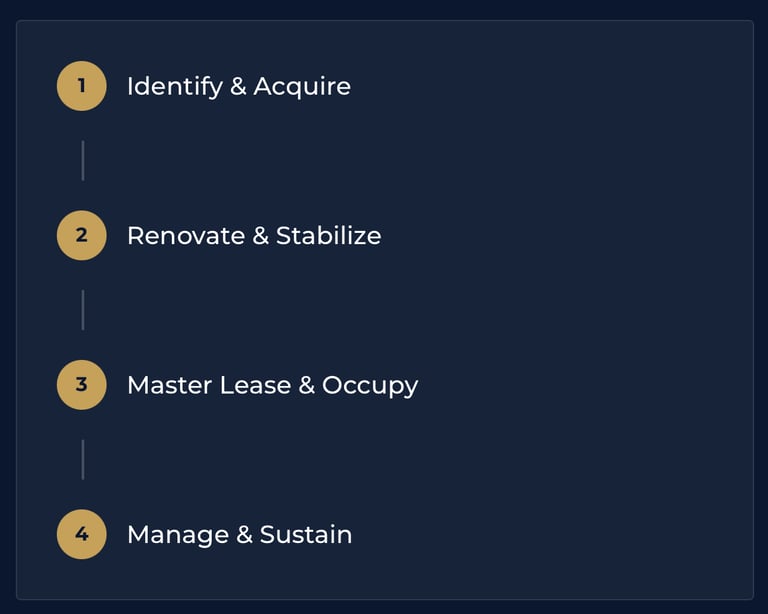 An end to end strategy for stabilizing distressed assets and creating high quality affordable housing.